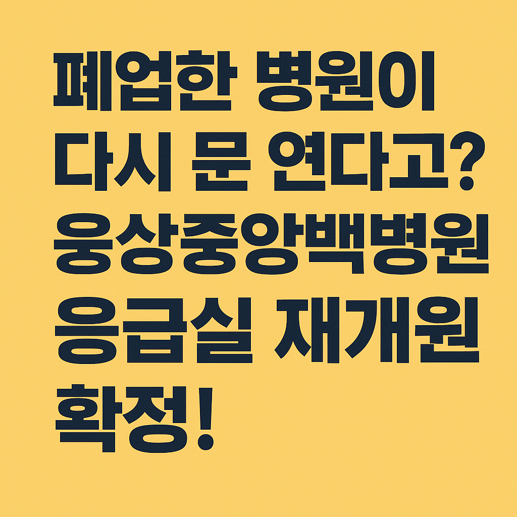 병원 이름은 **‘웅상중앙백병원’(가칭)**으로 바뀌고, 응급실 포함해 11월~12월 중 재개원 예정입니다.