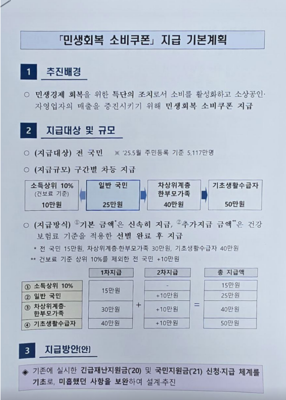 이재명 대통령이 제안한 민생회복지원금은 국민 생활 안정을 위한 핵심 공약입니다.