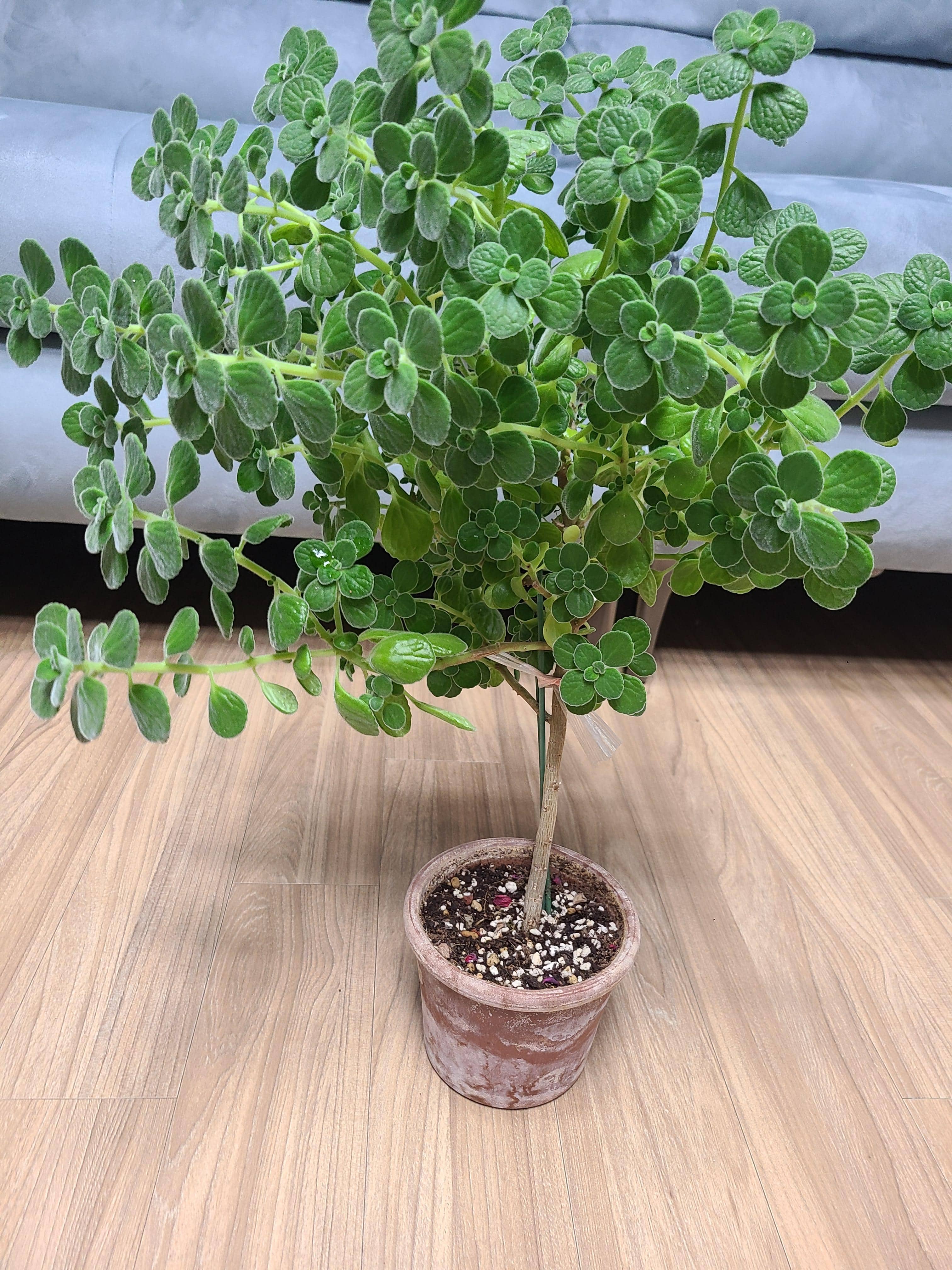 한국에서는 장미허브로 알려져 있고 영어로는 Vicks Plant이며 학명은 Plectranthus Tomentosa이다. 원산지는 남아프리카이고 다년생 식물이며 다육식물이다. 잎이 가로,세로 겹겹이 나는 모양이 장미를 닮았다하며 장미허브라고 불린다. 잎을 자세히보면 빽빽하게 털로 덮혀 있는 걸 볼 수 있으며 좋은 향기를 맡을 수 있다. 잎을 살짝 건들이거나 흔들면 향이 퍼져 디퓨저 효과를 잠시나마 볼 수 있다. 향은 사람마다 틀리지만 대부분 사과향과 레몬향 박하향 등 섞은 향이 난다고 한다. 빛이 드는 아무 공간에 두어도 잘 자라서 원하는 곳에 인테리어 하면 된다. 난이도가 낮고 키우기 쉬우며 55cm 이상 자라기도 한다. 시간이 지나면 줄기는 목질화하며 목질화 전에 지지대를 세워 외목대로 많이 키운다. 봄과 가을에 자주색 꽃을 피운다는데 몇년을 키우고 있지만 아직 꽃을 보진 못했다. 우리나라에서는 식용으로 잘 쓰진 않지만 외국에서는 끓는 물에 넣고 마시거나 증기를 흡입하면 인후통, 피부보호, 기침 감기에 좋다고 의료용으로 사용한다고 한다.